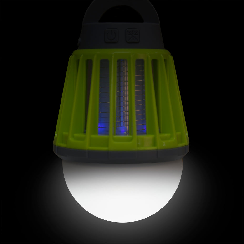 Prevent flying insects from spoiling the majesty of the night with our lantern/bug zapper! An ultraviolet LED attracts insects, luring them into an electrified grid, where they are painlessly exterminated. This 500 volt grid maintains insect-killing power for a full 24 hours! In addition to keeping your camp bug-free, this lantern bathes your night in 180- lumens of flicker-free LED light, and includes low, medium, and high settings. Better, the whole package includes a 24 inch USB to micro USB charging cord, so you'll never worry about forgetting the batteries again!