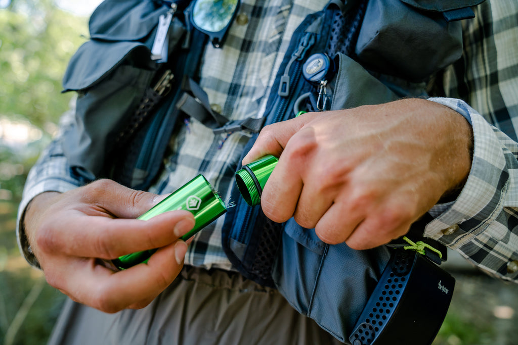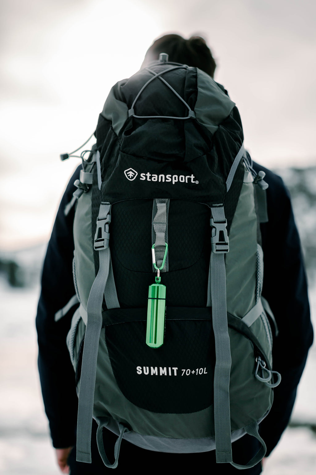- Carabiner easily attaches to belts, backpacks, and purses.