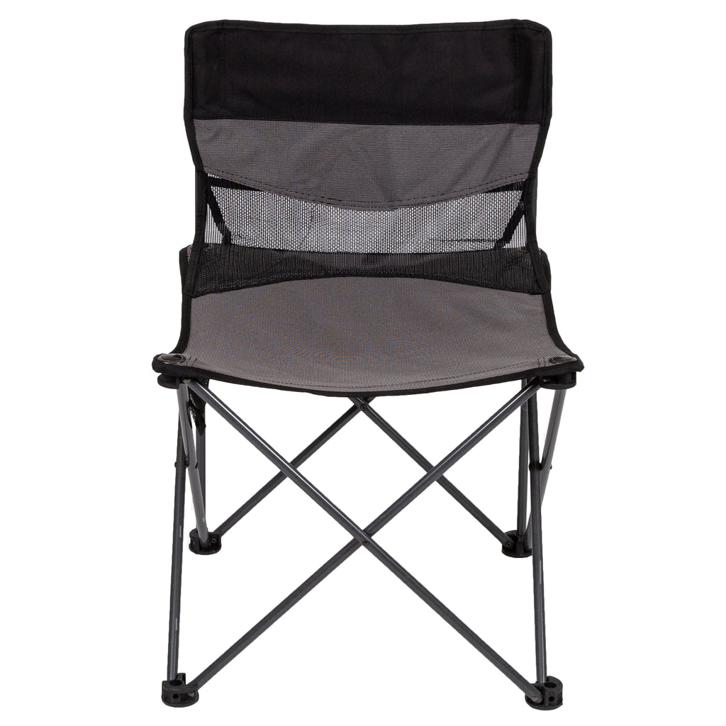 Our Apex Folding Sling Back Chair is the perfect accessory for campsites, sporting events, and backyard hang outs. This folding chair blends simple style with standout features like a polyester Oxford cross woven seat, powder-coated frame, and a zippered mesh side pocket. The comfy sling back seat includes a padded backrest for maximum outdoor relaxation. When the game is over, or the fire burns low, this chair stores compactly inside of an included polyester carry bag, which features a drawcord and shoulder strap for easy storage and transport.