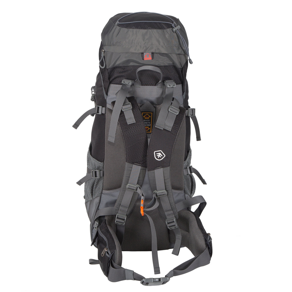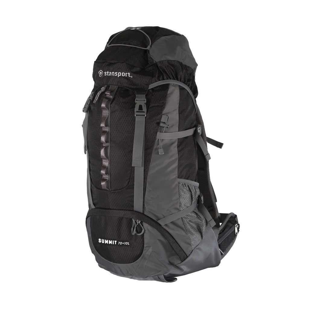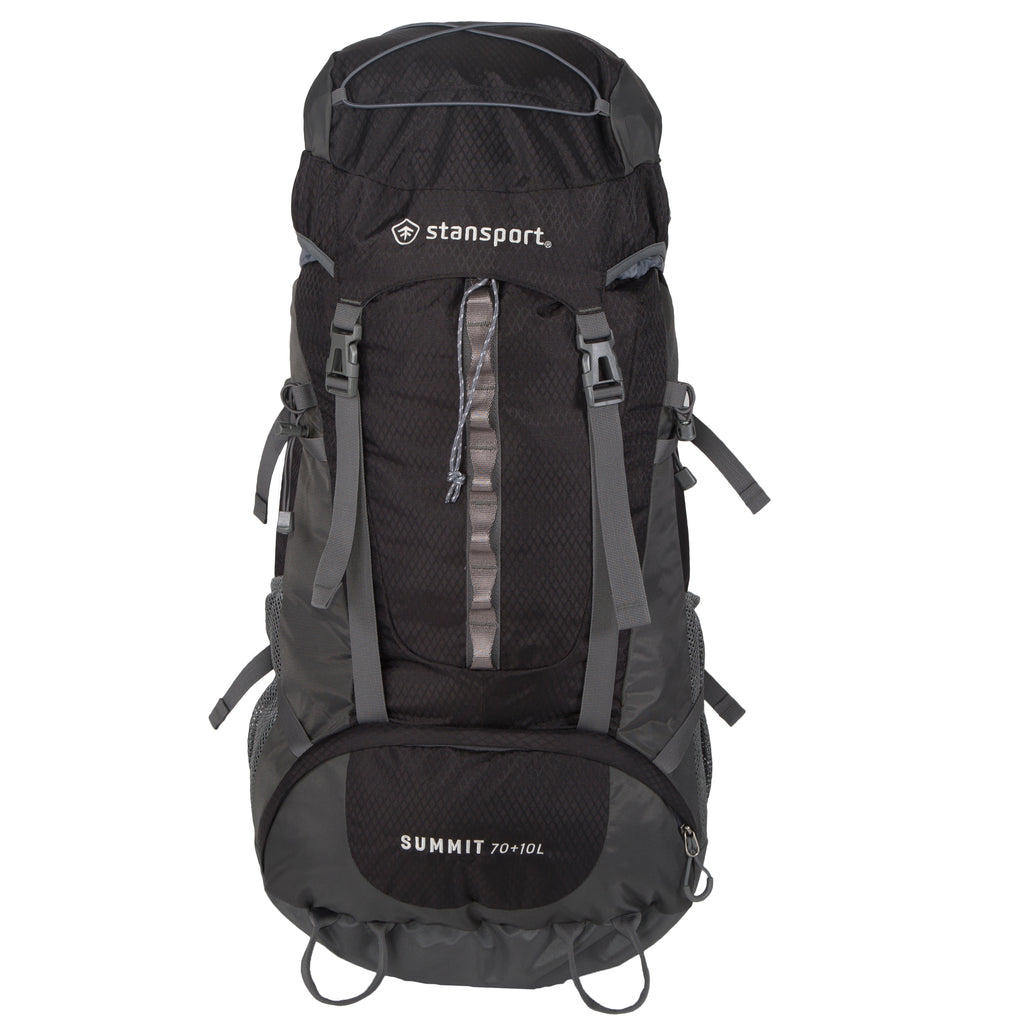 With our 70+10 liter pack, you'll be able to haul all the comforts of home deep into the wilderness, all without a sore back! Our Stansport internal frame system is built around a plastic frame sheet, and stiffened with metal frame stays. We combine this secure foundation with our adjustable suspension torso that adjusts from 15” - 21” to move the load off of your back and give you full ventilation by adjusting to your body size. Our breathable padded shoulder straps and waist belt keep your shoulders and hips as cool as your back, without chafing or pinching. If you're going to carry a high-volume, heavy load into the woods - this is the pack for you!