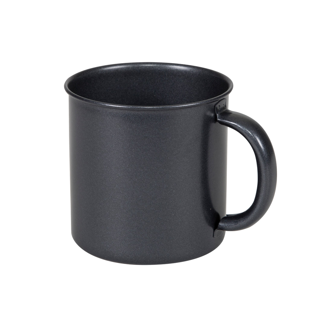 Sip in style with this sharply styled mug. Constructed from steel and coated with a durable, non-reactive "black granite" enamel coating, this mug holds 14 oz of your favorite beverage. If you're sipping something hot, the tubular handles will keep your fingers comfortably cool.