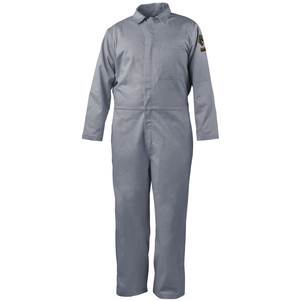 Black Stallion's CF2117-GY NFPA 2112 7 oz. FR Cotton Coveralls is constructed of cooler lighter weight 7 oz. FR treated cotton and tested to retain protection through 100 washes. They meet or exceed industry standards for FR and Arc Flash (NFPA 2112 and NFPA 70E -- ARC 2 ATPV 8.7 cal/cm^2)