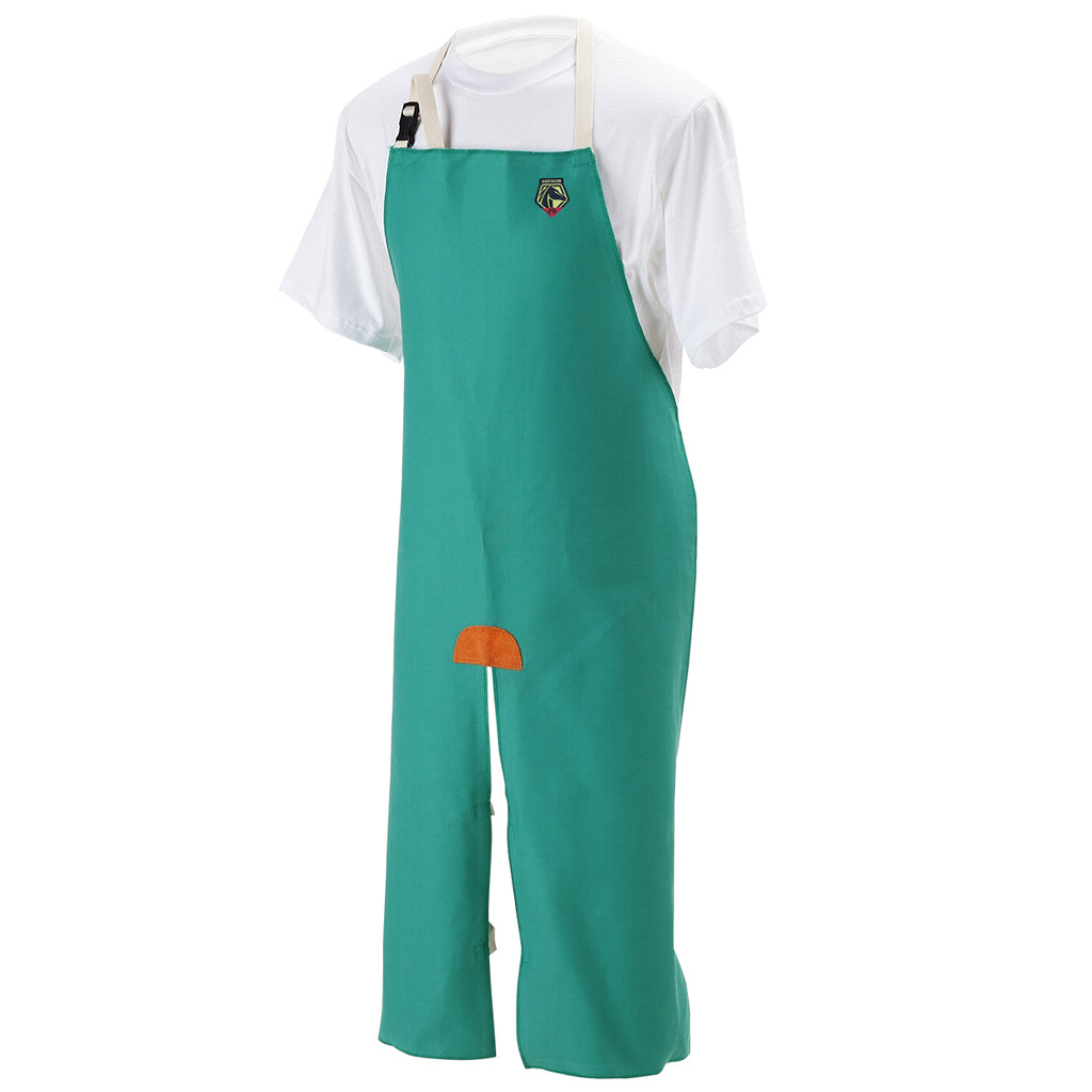 Black Stallion's F9-48SL Flame-Resistant Cotton Split-Leg Apron is a 48" Length FR Cotton Apron, useful for providing protection from sparks and splatter. The adjustable leg straps help keep the apron secure and free from snagging on machinery.
