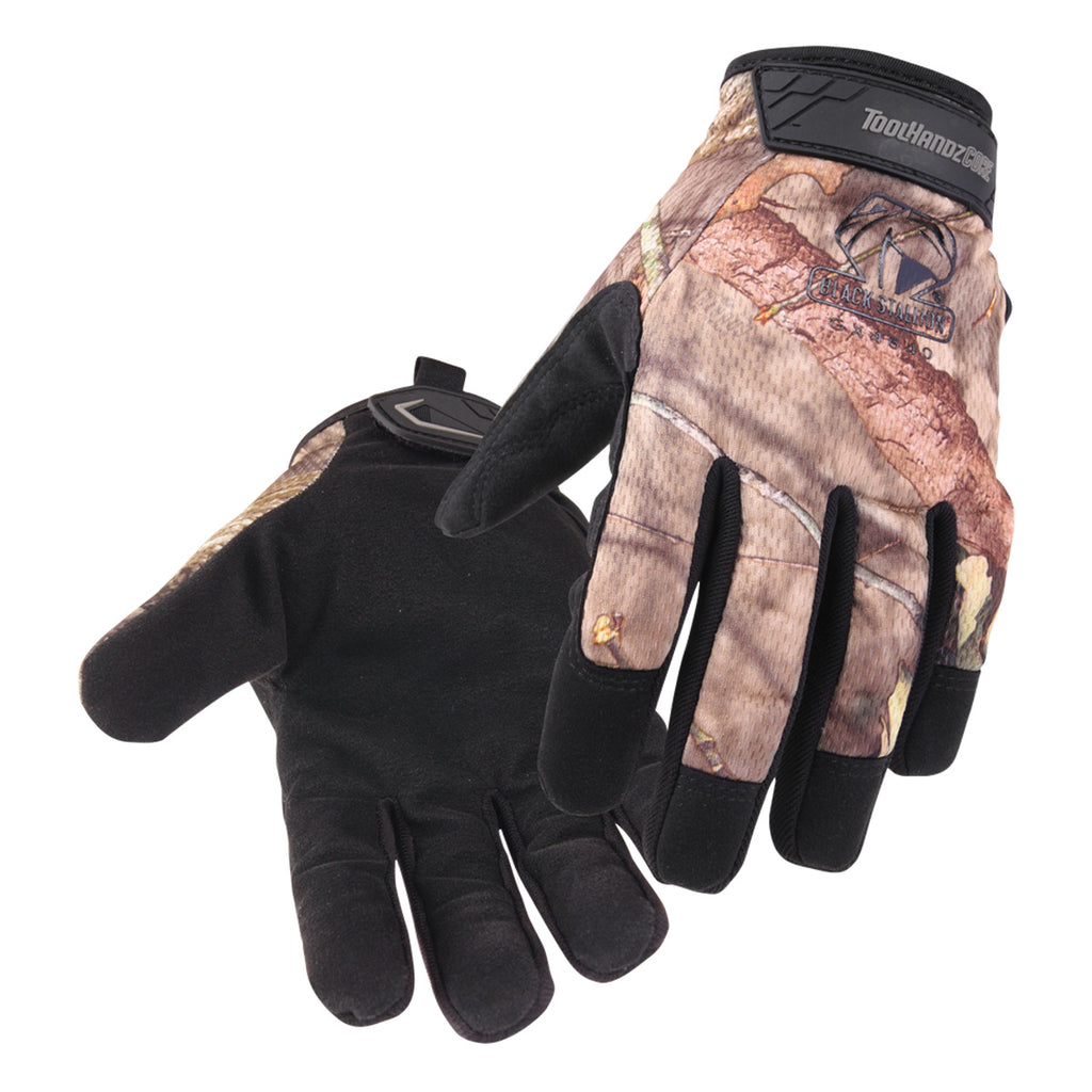 The Black Stallion GX4640-MB ToolHandz CORE Mossy Oak® Multiuse Mechanics Glove offers protection and style. Black Stallion® has partnered with Mossy Oak® to offer a new series of gloves, featuring the Mossy Oak® Break-Up Country pattern. The synthetic leather palm helps keep the hands cool & comfortable, while the, Mossy Oak® Break-Up Country birdseye spandex back helps meld your outline with the terrain like no pattern that has come before it. To pad the fingers and extend the life of the gloves, we've reinforced index finger & all fingertips and double-stitched thumb reinforcement. The wrist is held in place with a TPR cuff, complete with a hook & loop closure.