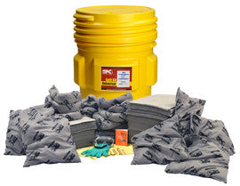 Brady® Allwik® 65 gal Universal Drum Spill Kit is tough, secure, reusable and has absorbency of 63 gal/bale. Kit contains 100 pads, 7 Socs, 7 pillows, 1 pair gloves, 7 disposal bags, 1 pair goggles and emergency response handbook. Screw topped Kit is ideal for medium-large spill responses.