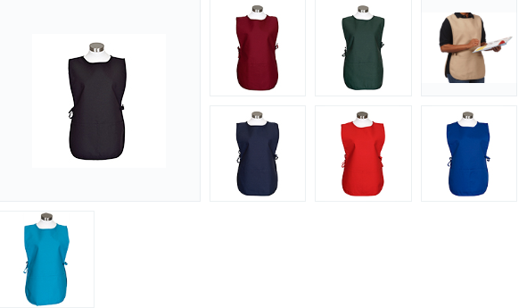 Size: 28" L x 18" W Full rounded styling, Center divided pouch pocket, adjustable side ties. Made from 7.5 oz. 65/35 poly/cotton twill.