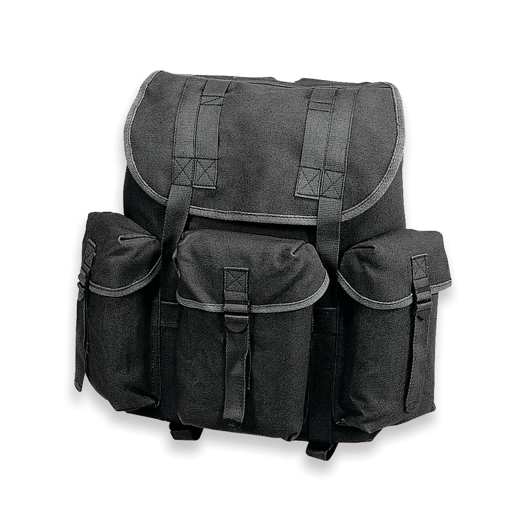 This rucksack mixes a timeless military aesthetic with genuine tactical features. Constructed of extra heavy weight cotton canvas, this pack meets rigid U.S. Government specifications. A grommeted drawstring top provides easy access and secure closure for the large main chamber. Three outside covered pockets are perfect for storing tackle, ammunition or gadgets, and are secured with strap and buckle closures. Double-reinforced shoulder straps provide enough support to carry a load of ammo or semester's worth of textbooks. All the pack hardware is black oxide finished, proving superior rust-resistance and a unique look.