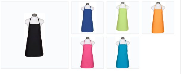 Size: 28 L x 23 W. No pockets. Economical loop neck. Made from 7.5 oz. ultra-durable 65/35 poly-cotton twill. Protected by ProDura stain release finish.