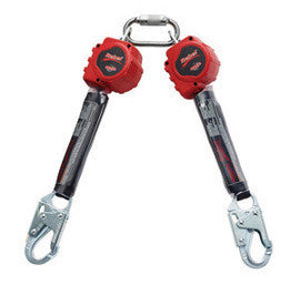 6 ft. (1.8m) twin-leg lifelines with 1" (2.5cm) polyester web- The synthetic lifelines reduce overall weight and the retractable design provides freedom of movement, keeps the lifeline out of the worker's way and reduces dragging, snagging and trip falls