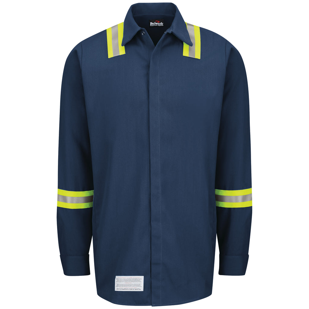 This Enhanced Visibility Concealed-Gripper Pocketless work shirt combines CAT2 protection with enhanced visibility to make this your go to work shirt. Features concealed-gripper closure, enhanced visibility striping, and sleeve vents. (Fit Chart: MFC-46)