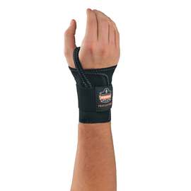 Single strap support with open center stay: supports wrist during repetitive motion discomfort by limiting wrist movements.