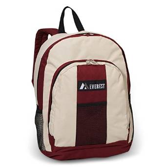 Everest Luggage Backpack with Front and Side Pockets - Deep Red/Beige