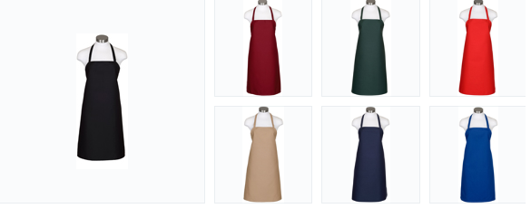Size: 33 L x 29 W. No pockets. Economical loop neck. Made from 7.5 oz. ultra-durable 65/35 poly-cotton twill. Protected by ProDura stain release finish.