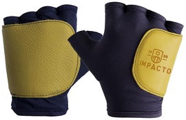 IMPACTO® Anti-Impact Palm/Side Padded Glove. Fingerless with nylon Lycra® back. Impact and vibration reducing VEP 1/8" padding protects the palm, edge and back of the hand. Durable grain leather cover protects from abrasion.