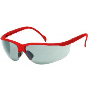 Red Frame - Gray Lens - Soft Rubber Nose Buds - Adjustable Temples Safety Glasses