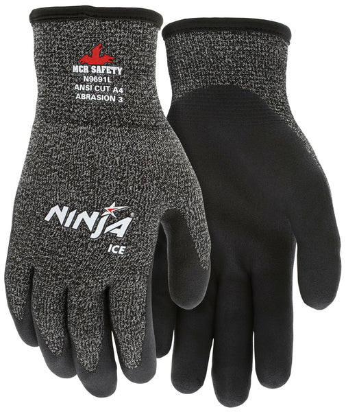 MCR Safety Ninja® gloves are engineered to provide the highest level of innovation. Each of the offerings in the Ninja® series include a unique shell and polymer combination incorporating the latest in hand protection technology. Our Ninja® Glove Line offers the greatest assortment of dexterity, sense of touch, and protection. The Ninja® Ice N9691 insulated glove features a 15 gauge Hypermax™ cut resistant shell with a 7 gauge acrylic terry interior liner. The black HPT® coated palm and fingertips offer excellent grip and dexterity while helping to repel liquids. The interior of this glove is treated with ActiFresh® which provides odor control and antimicrobial protection. Looking for the best cut resistant winter work gloves for dexterity? Look no further than MCR Safety insulated work gloves?