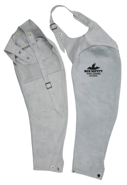 MCR Safety Welding, Leather Welding Apparel, Gray Select Split Cow Leather, Sewn With DuPont™ Kevlar®, Sleeve with Adjustable Neck Strap, 25 Inch Length. When the heat is on and the sparks are flyin', this Heavy Side-split leather offers outstanding protection from heat, sparks, slag, and cuts. Keep yourself safe! Hold it together! Stay safe with MCR Safety Welding.