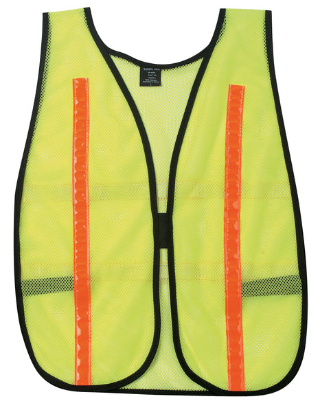 These general purpose mesh safety vest will cover you in bright Fluorescent Orange or Fluorescent Lime colors and help you to stand out and be seen in your surroundings. One size fits most unless otherwise stated. Available in a variety of configurations and colors. The V200FS is a fluorescent lime polyester lightweight mesh vest with 1 inch red orange reflective stripes. It features a hook and loop tab front closure and has an elastic strap on each side. Not ANSI rated. If you are looking for the best safety vest options, look no further than MCR Safety's wide assortment of hi-visibility products.