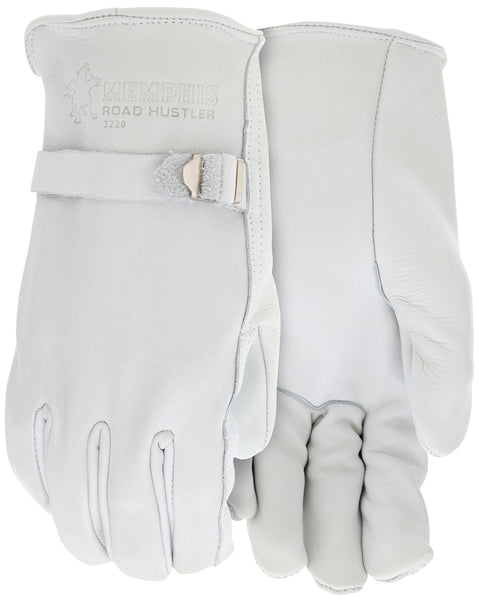 From wranglin' to buildin', these gloves are tough for the job! Cowhide is the most commonly used leather due to availability. Characteristics include a good balance between abrasion resistance, dexterity, durability and comfort. The 3220 drivers gloves feature; unlined premium grade cow grain leather, pull strap back, rolled leather hemmed, and a straight thumb pattern.