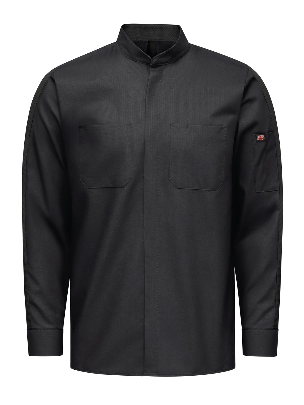 The back mesh flex panel and underarm gussets enhance appearance and improve mobility and breathability. Ripstop is lightweight but ultra-durable and offers superior color retention, plus soil release while wicking sweat away from the body during sweaty shifts. Covered snaps keep paint jobs protected and offer a professional appearance.