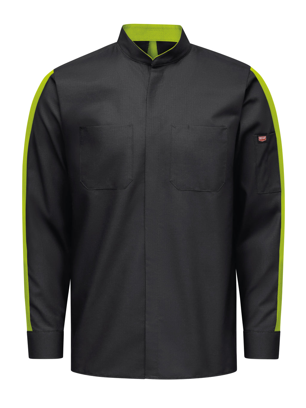 The back mesh flex panel and underarm gussets enhance appearance and improve mobility and breathability. Ripstop is lightweight but ultra-durable and offers superior color retention, plus soil release while wicking sweat away from the body during sweaty shifts. Covered snaps keep paint jobs protected and offer a professional appearance.