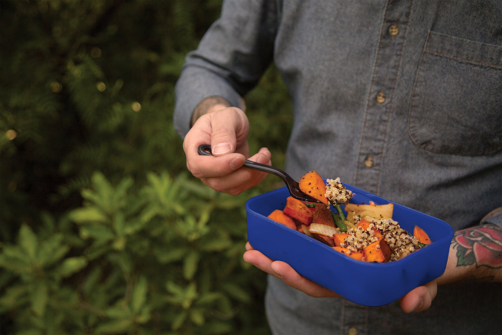 Keep your camp kitchen organized with the Stansport® One Person Compact Table Set. Each set includes a fork, spoon, and knife, one 20-ounce bowl, one 24-ounce bowl, and a cutting board for all of your camp kitchen needs. The set is crafted from food grade polypropylene. All of the items nest together in a compact design, so you never need to worry about misplacing your fork again. This lightweight and washable table set is perfect for backpacking or car camping, just throw it in with the rest of your gear and get outside!