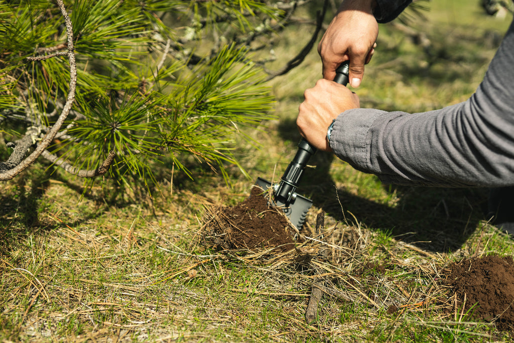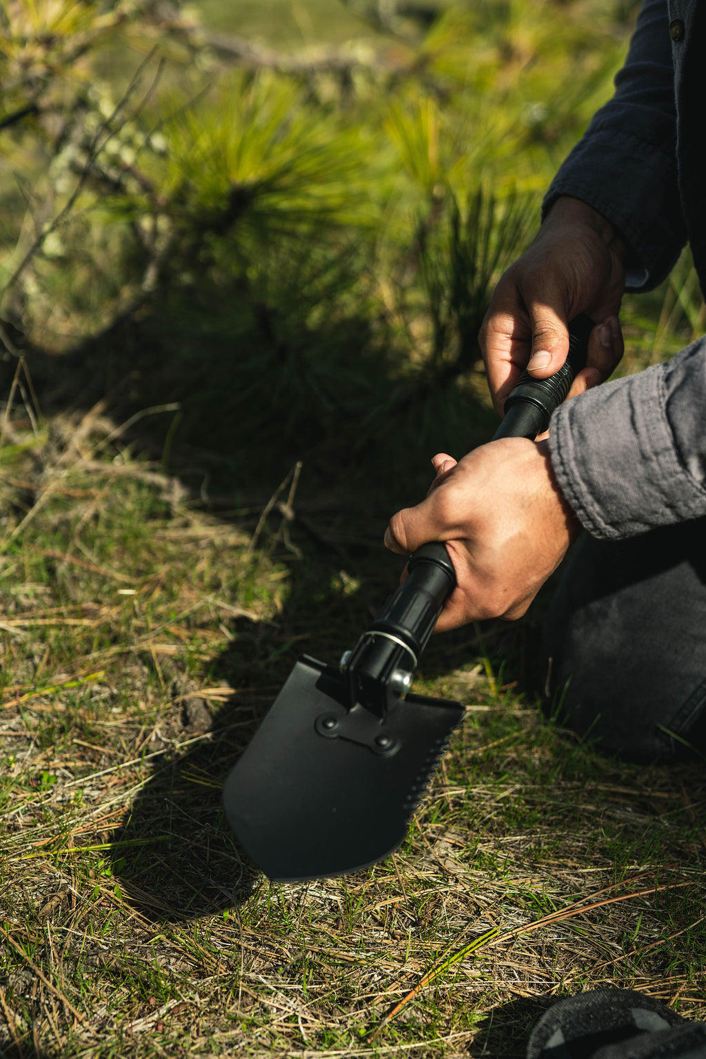 Digging a fire pit, knocking paydirt from a streambed, trenching a tent platform - there are more uses for shovels in the outdoors than you can name! Our miniature shovel is constructed from tempered, forged steel and expands to a full 15.9 inches. Our mini shovel collapses to a compact, 6-inch package, giving you all the power and durability of a full-sized shovel, a taking up a fraction of the space.