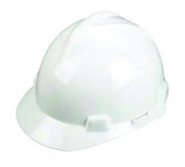 - MSA V-Gard® White Class E Polyethylene Large Slotted Hard Cap With Fas-Trac® Suspension has self-adjusting crown straps which offers comfortable protection. Slots are designed to work with MSA accessories which assure compliance with both the helmet, accessory and polyethylene shell provides tremendous impact protection. Cap finds its applications in agriculture, asbestos abatement, chemical, construction, electric utility, hazardous materials, mining, nuclear, oil & gas paper and pulp, sand blasting, sanding & grinding, water/wastewater, welding, general industry, HVAC, confined space, food processes, painting and utilities. This ANSI type I cap can be customized with imprinting and striping and meets ANSI/ISEA Z89.1-2009 and CSA Z94.1-2005 standards.