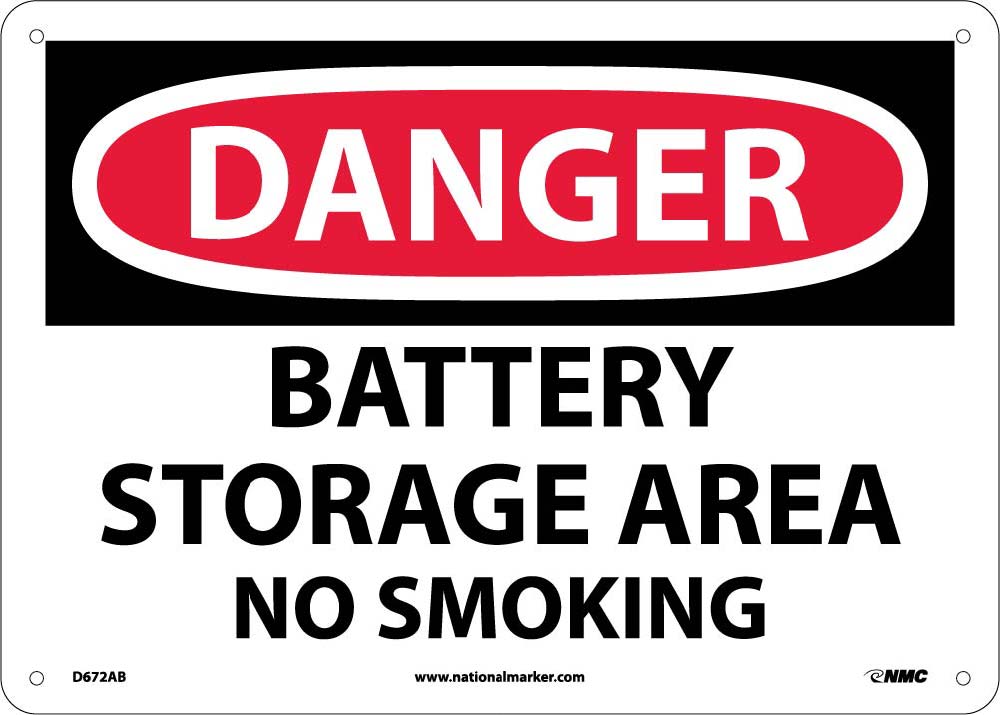 Danger, Battery Storage Area No Smoking, 10X14, .040 Alum National Marker