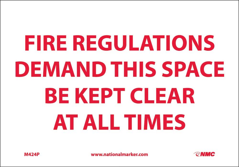 Fire Regulations Demand This Space Be Kept Clear Sign