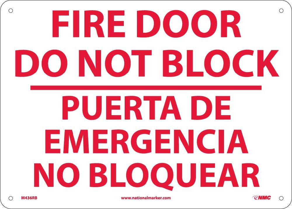 Fire Door Do Not Block Puerta De Emergencia. . .(Bilingual)