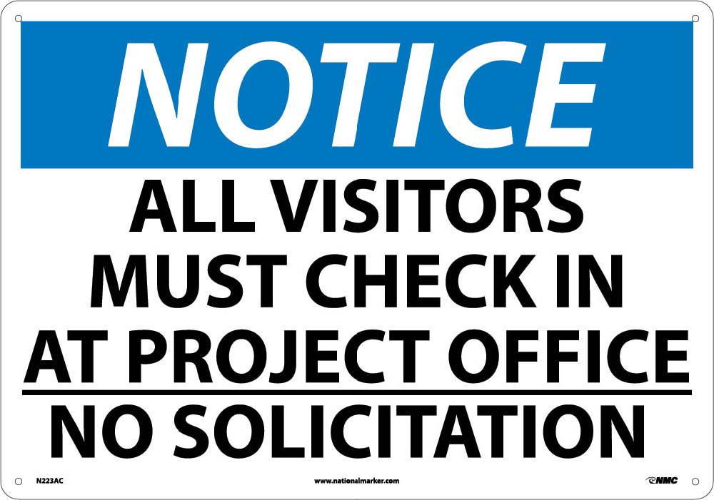 Large Format Notice All Visitors Must Check In At Project Office Sign