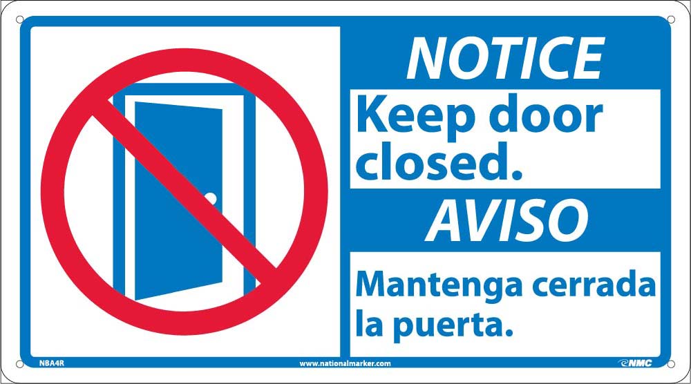 10 X 18 Notice Keep Door Closed/Aviso (Bilingual W/Graphic)