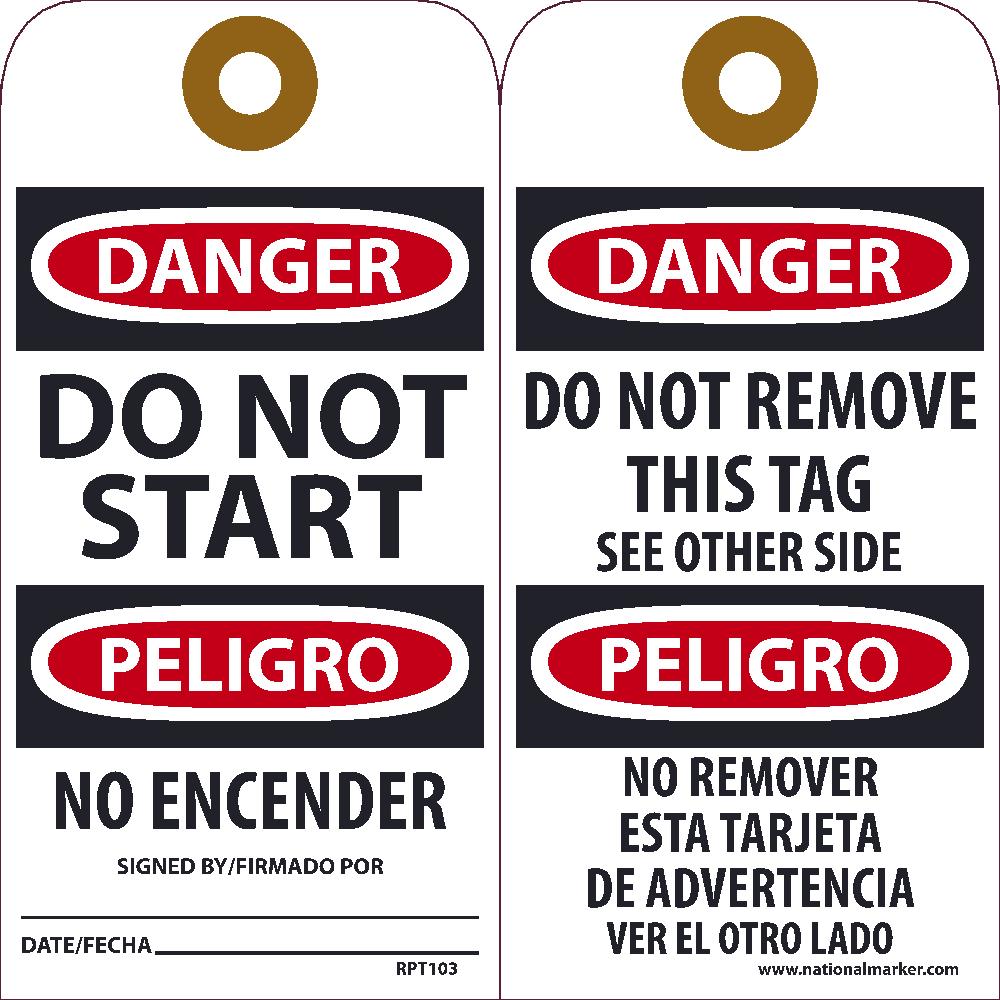 Danger Do Not Start Bilingual Tag - Pack of 25