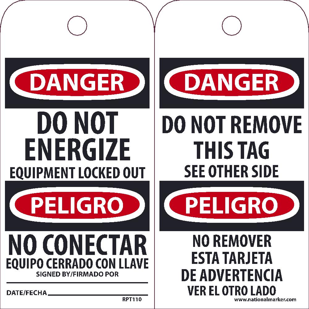 Danger Do Not Energize Equipment Locked Out Tag - Pack of 25