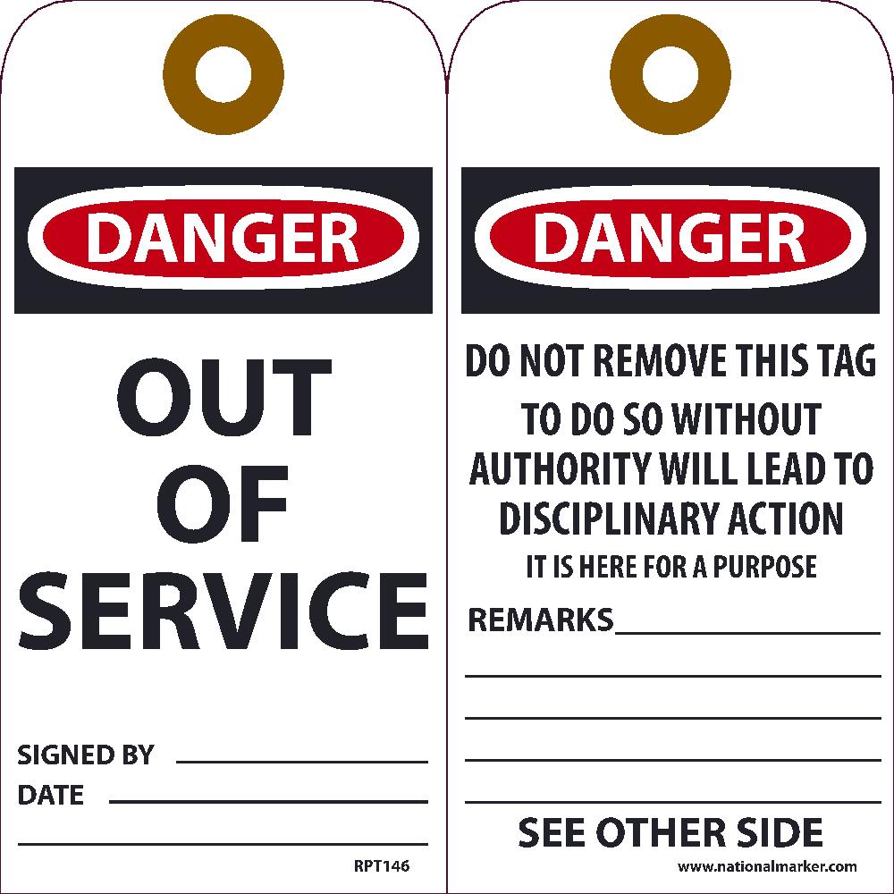 Danger Out Of Service Tag - Pack of 25