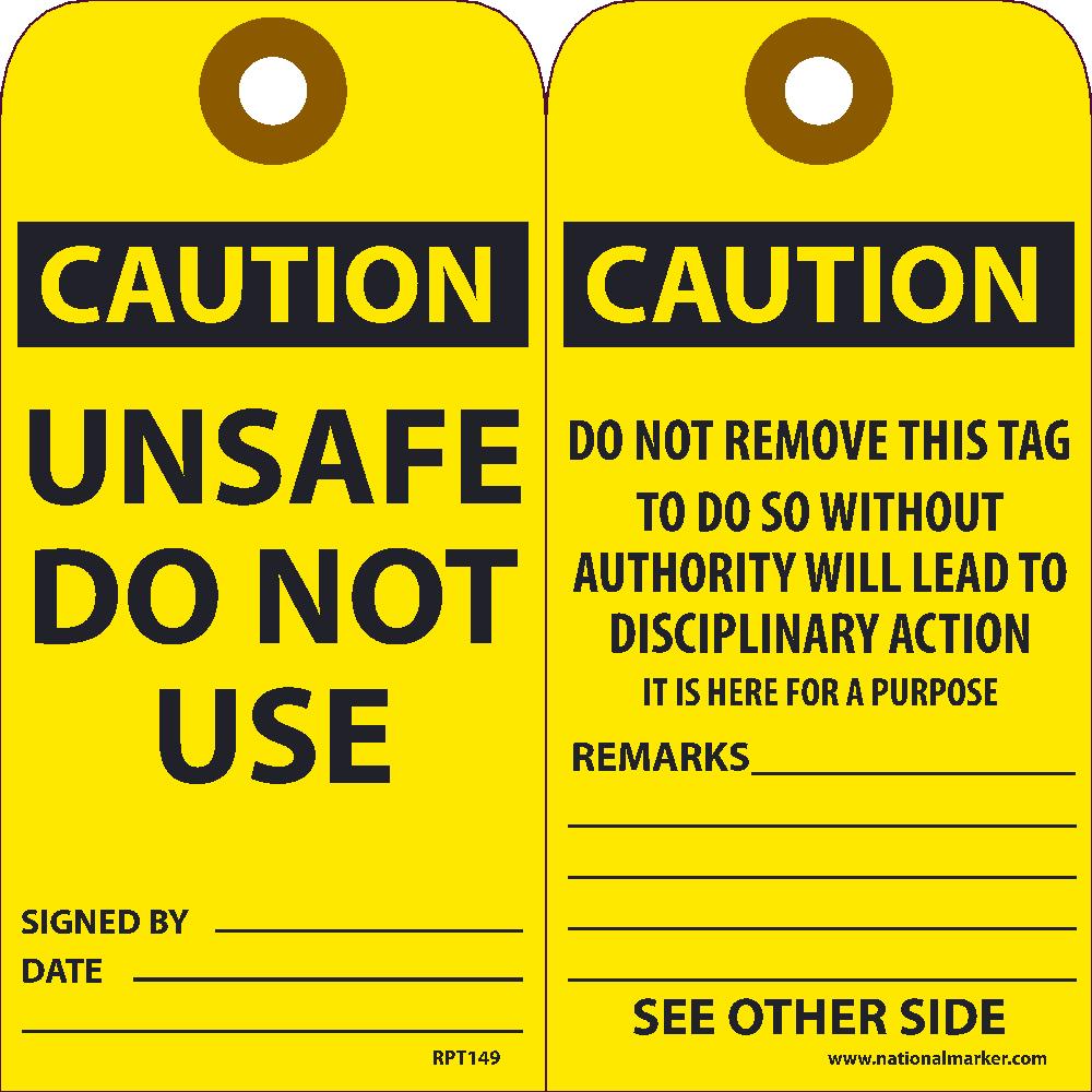Caution Unsafe Do Not Use Tag - Pack of 25