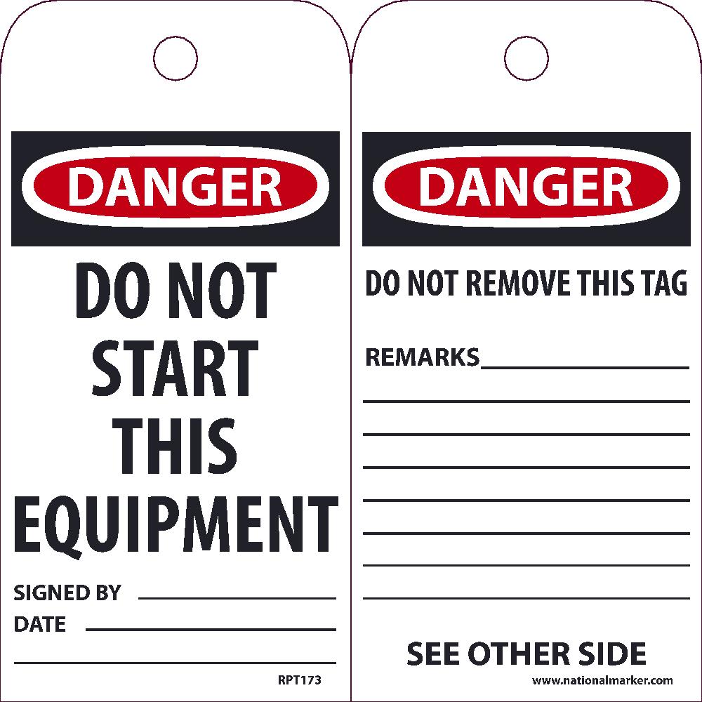 Danger Do Not Start This Equipment Tag - Pack of 25