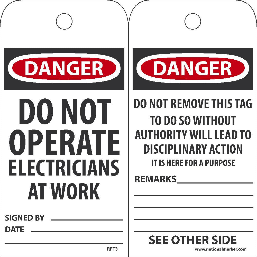 Danger Do Not Operate Electricians At Work Tag - Pack of 25
