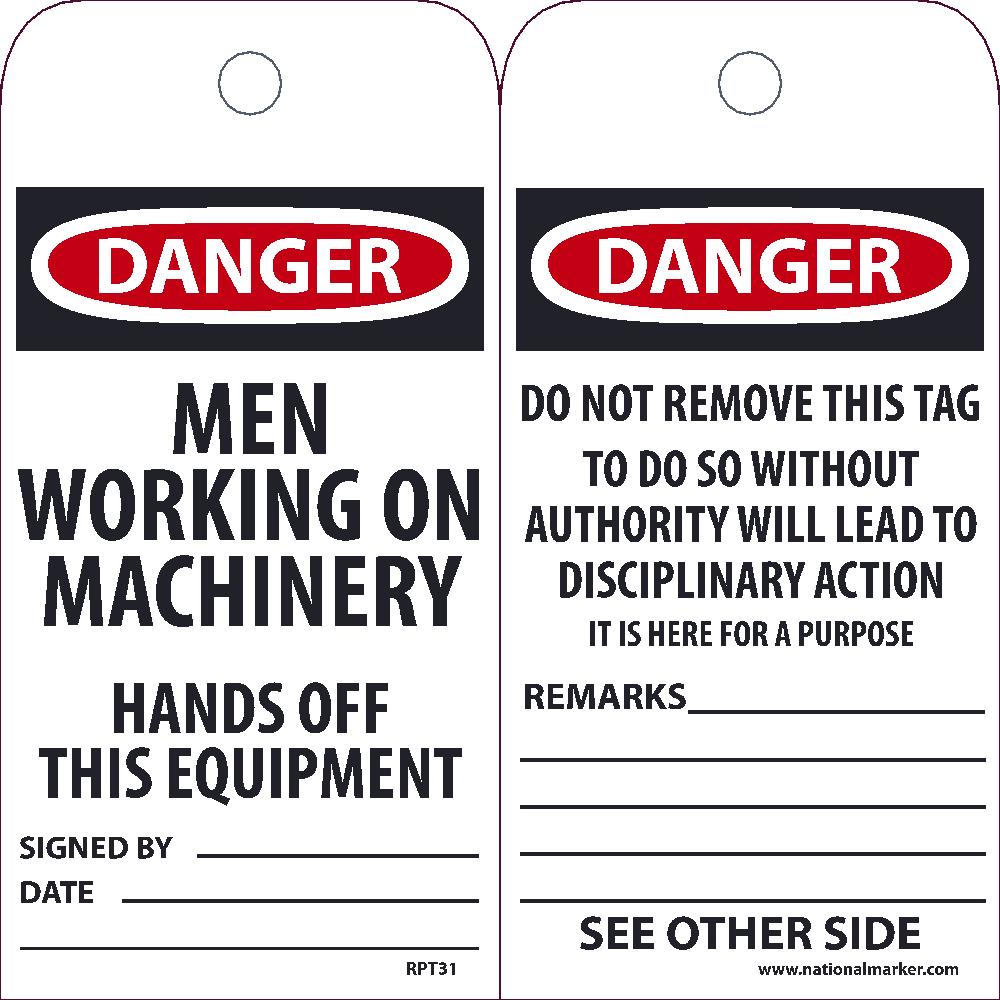 Danger Men Working On Machinery Hands Off This Equipment Tag - Pack of 25