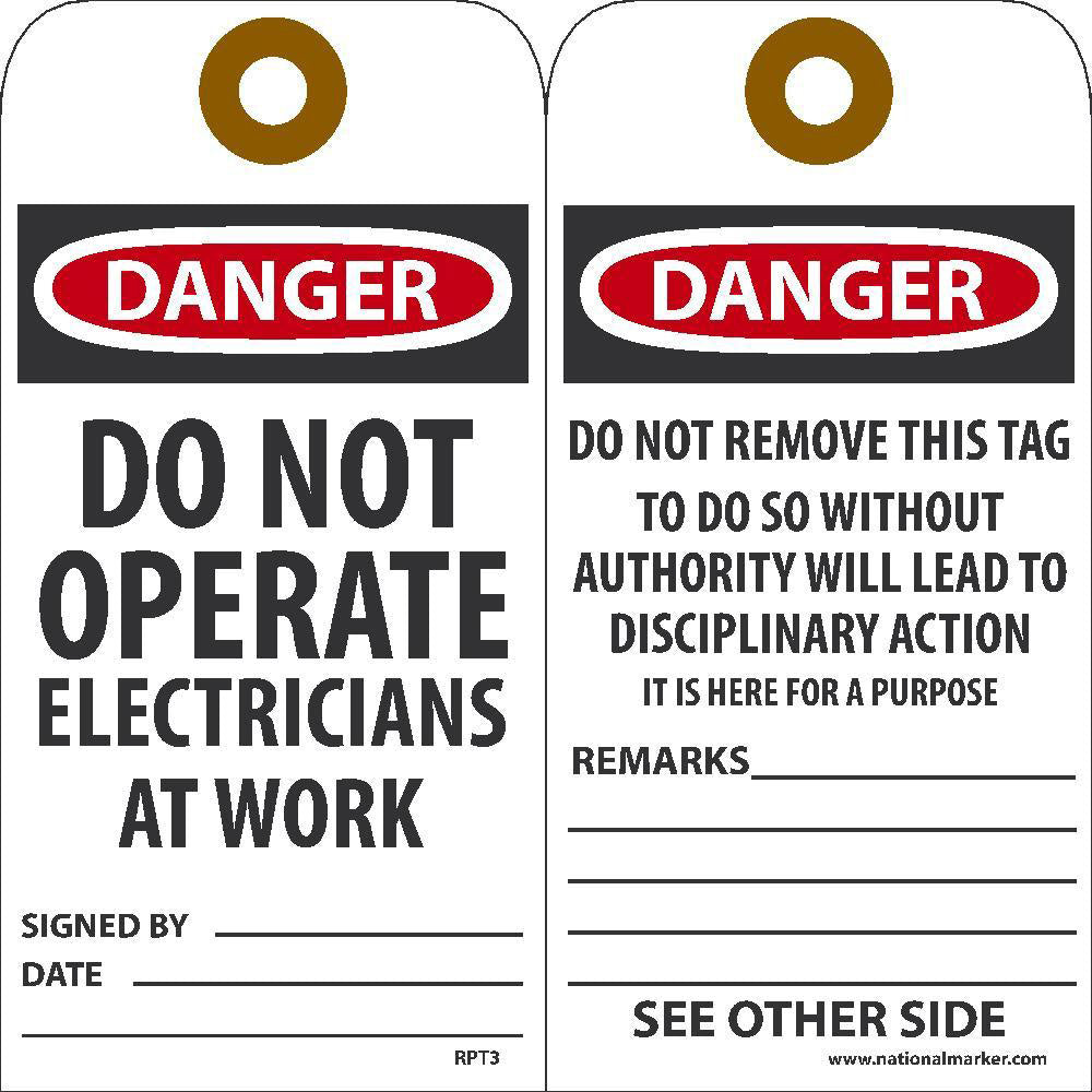 Danger Do Not Operate Electricians At Work Tag - Pack of 25