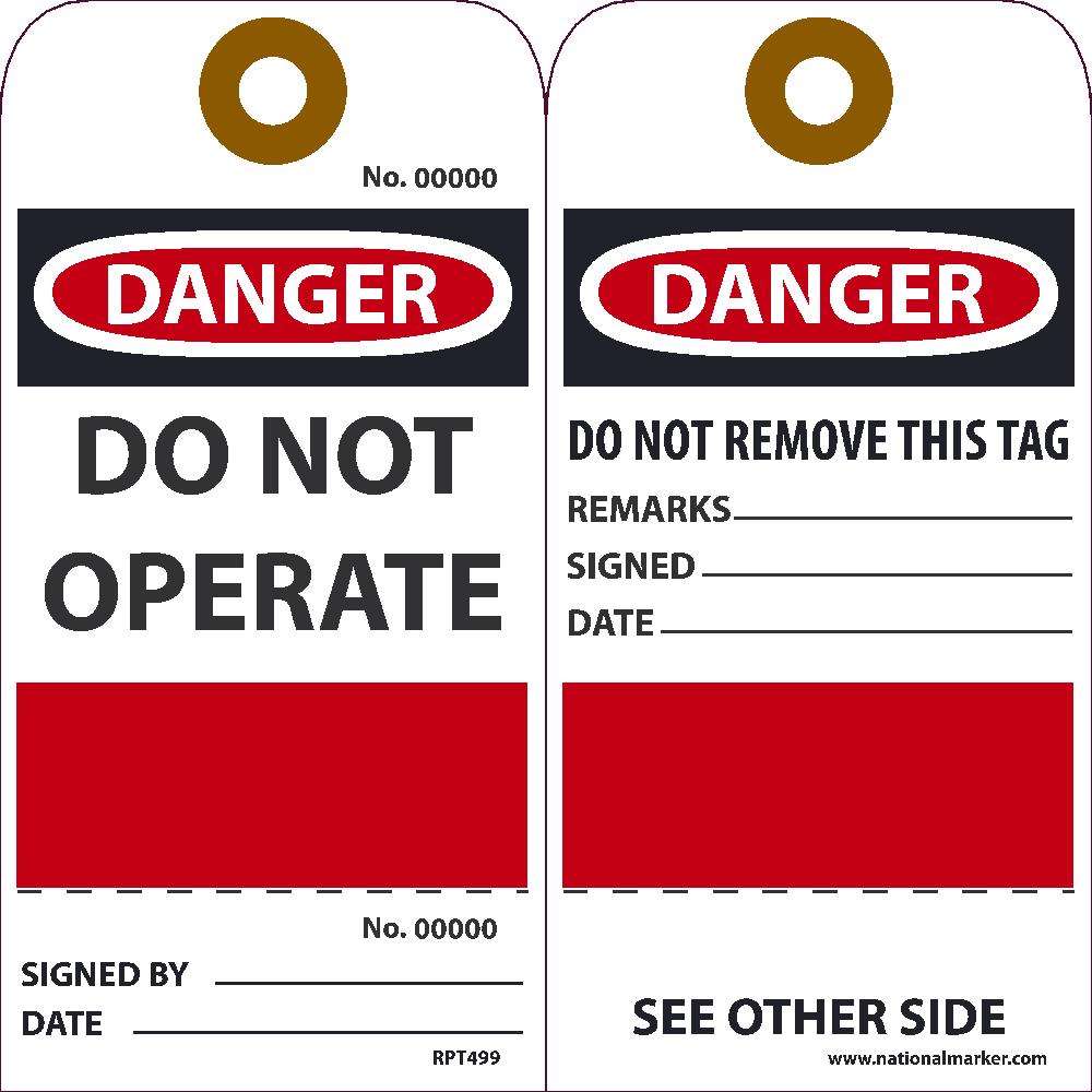 Danger No. ___ Do Not Operate No.___ Tag - Pack of 25