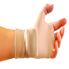 OccuNomix OccuMitts® Plus Medium 4" Beige Therapeutic Support Gloves comes with sewn-in wrist cushions that provide relief from pressure while using a regular wrist rest may not be possible like working on an assembly line, using a cash register or processing food.