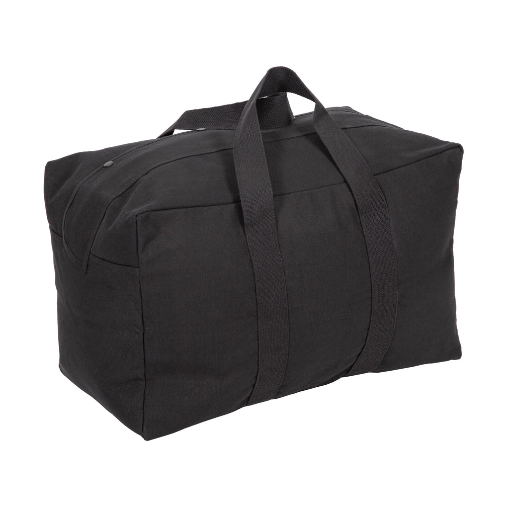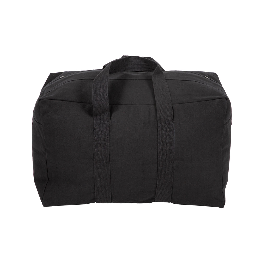 The Stansport Cotton Canvas Parachute Cargo Bag is made of rugged cotton canvas. It's large compartment can hold clothing and gear. The full length zipper and two handles make for easy access and carrying. The snap flap over zipper helps keep the weather out. Size: 24" x 15" x 13". Color: Black