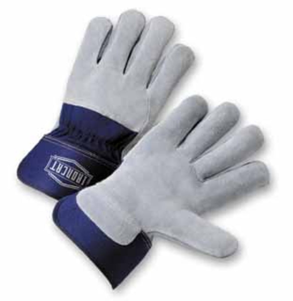 PIP® Ironcat® premium split cowhide leather palm gloves with a 3/4 leather back. Rubberized safety cuff helps protect wrists. Sewn with super-strong, heat-resistant DuPont® Kevlar® thread. Full-featured gunn pattern work gloves come with absorbent cotton lining.