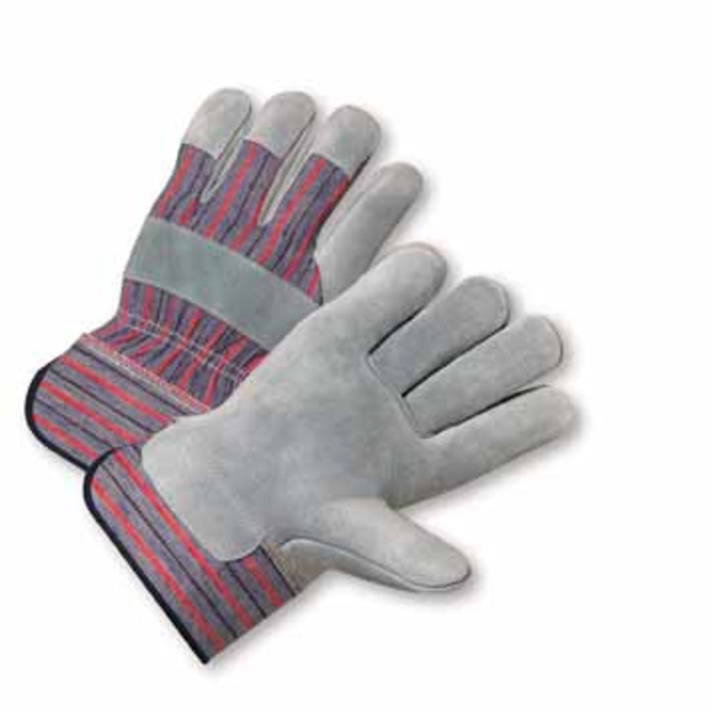 PIP® split cowhide leather palm, index finger, fingertips and knuckle strap adds to the protection.Canvas back provides reliable hand protection in general-duty applications. 2 1/2" Rubberized safety cuff provides extra protection. Application areas include construction, masonry, agriculture, iron/steel work, mining, transportation, electrical contractors and woodworking.