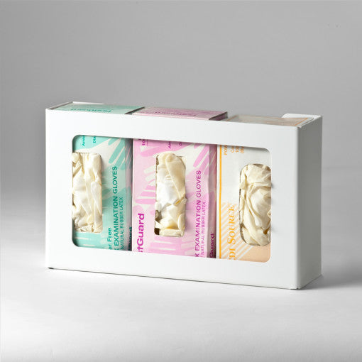 3-Box Easy Acces Plastic Box Glove Dispenser, WHITE HEAVY-DUTY PLASTIC, table or wall mount for easy access, 11″H x 15 1/4″W x 4″D