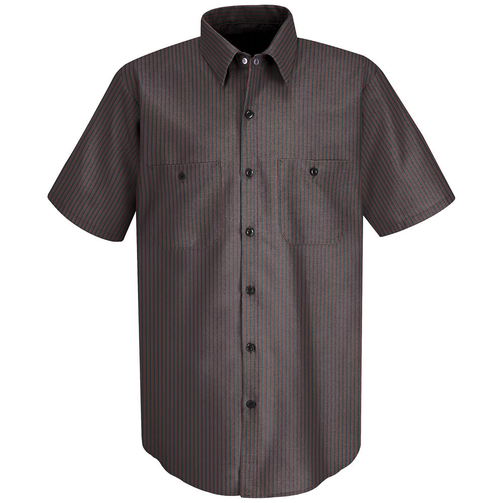 Red Kap Men's Short Sleeve Durastripe Performance Tech Work Shirt features a subtle stripe design for a classic style, and is engineered with the same moisture-wicking and stain-resistant technology to keep you fresh and dry on every job.