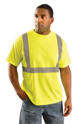 OccuNomix 3X Hi-Viz Yellow Classic Lightweight Standard Wicking Birdseye Polyester Class 2 Short Sleeve T-Shirt includes silver reflective tape stripes, perfect for low light conditions and left chest pocket for storage purpose. It features 100% ANSI wicking birdseye and has wicking material that helps to draw away moisture and keep workers comfortable and dry.