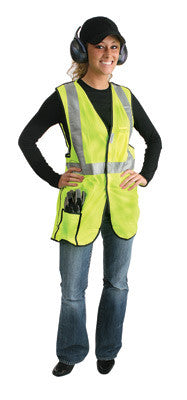 Radnor® Breakaway Vest Delivering the utmost in safety, our Break-Away Vests includes hook and loop fasteners at the top, sides and front, which breakaway when tugged with moderate force. Vest also features: Bright, lightweight polyester fabric. 2" 3M™ Scotchlite™ reflective tape - One 360° horizontal stripe, plus two vertical shoulder stripes. One pocket outside right front bottom with pencil/pen subcompartment. One utility loop outside left chest for ID cards, microphone and other small tools or devices.